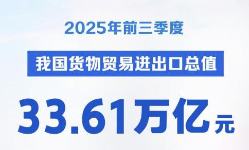 海关总署13日发布数据显示,今年前三季度,我国货物贸易进出口总值33.61万亿元,同比增长4%,比前8个月加快0.5个百分点。2025-10-13