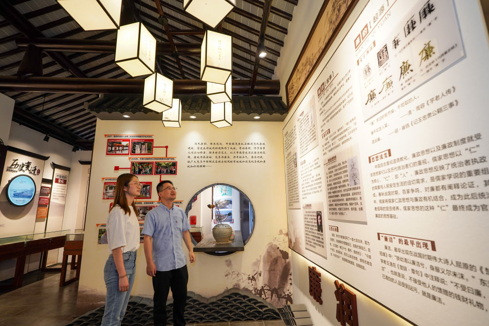 2024年7月4日,参观者在苏州市吴江区平望镇廉洁教育基地莺湖廉园内参观。新华社记者 李博 摄