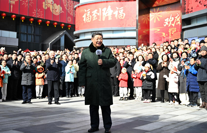 2月9日至10日,中共中央总书记、国家主席、中央军委主席习近平在北京考察并看望慰问基层干部群众。这是10日上午,习近平在东城区隆福寺街区考察时,向全国各族人民和香港同胞、澳门同胞、台湾同胞、海外侨胞致以美好的新春祝福。新华社记者 燕 雁摄