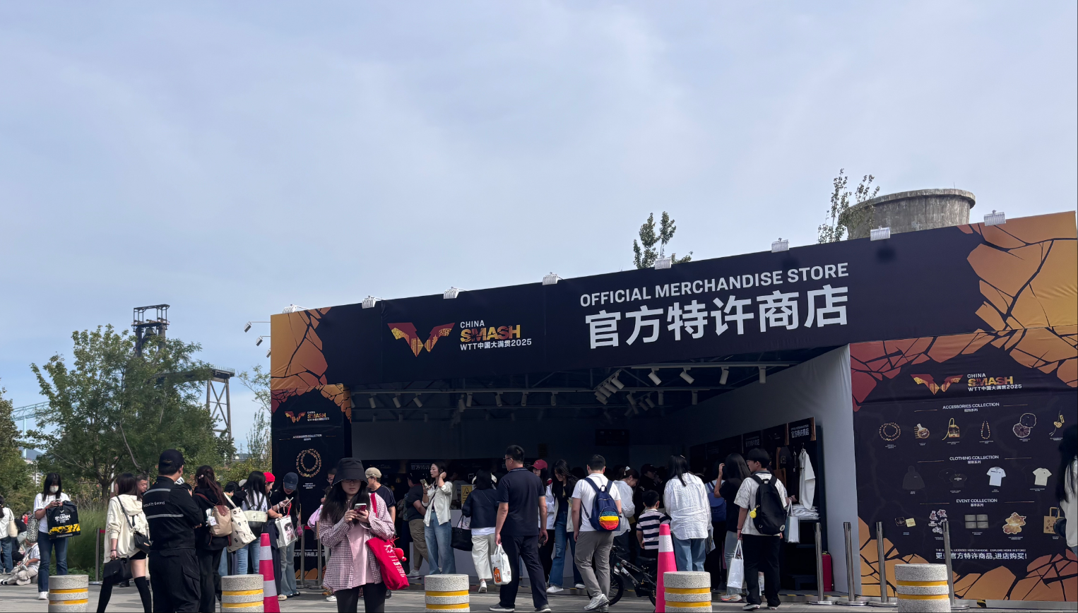 2025年10月1日,消费者在北京首钢园的WTT中国大满贯赛官方特许商店内购物。新华网记者 游苏杭 摄