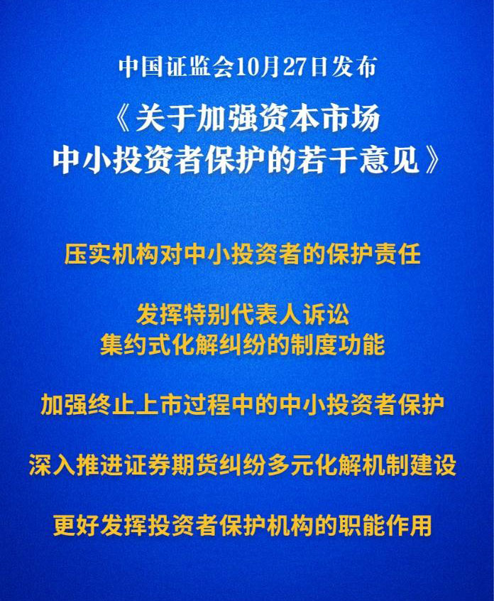 中国证监会10月27日发布《关于加强资本市场中小投资者保护的若干意见》。